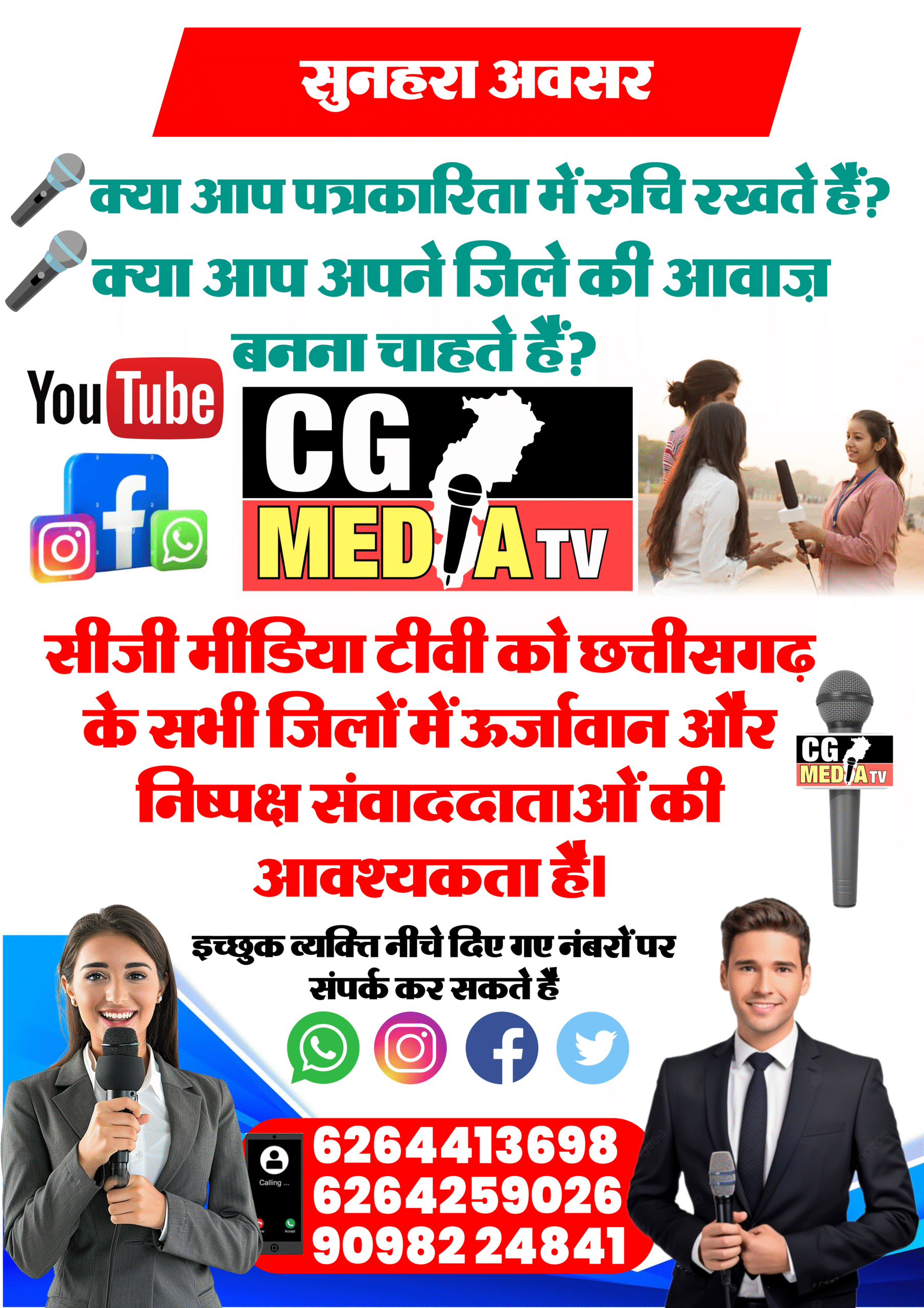 CG MEDIA TV:RDSS योजना के अंतर्गत सुधार कार्यों के चलते कल यानी 21 फरवरी 2026 को क्षेत्र की बिजली आपूर्ति…
