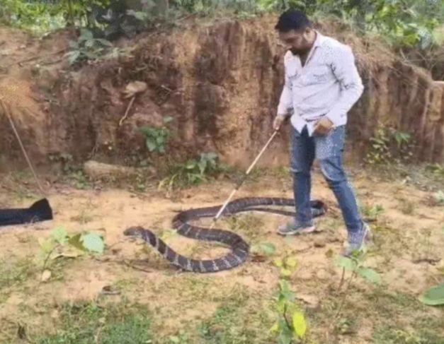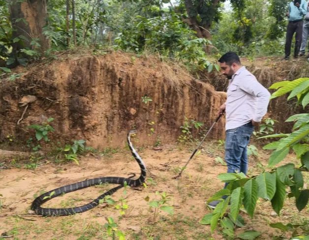 किंग कोबरा को रेस्क्यू कर जंगल में छोड़ा