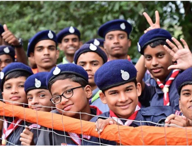 मोदी के स्वागत के लिए एयरपोर्ट से कार्यक्रम स्थल की ओर जाने वाले रास्ते में छात्रों के साथ लोगों की भीड़ लगी है