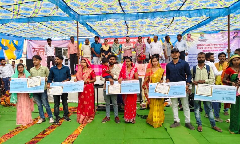 इस अवसर पर हितग्राही प्रदीप आजाद एवं उषा कर्ष , ओमप्रकाश चौहान एवं अमना साहू ,नंदलाल रात्रे एवं किरन निषाद ,राहूल सारथी एवं निकिता गिरी,धनेश्वर प्रसाद साहू एवं कुलेश्वरी, लक्ष्मण घृतलहरे एवं सुस्मिता जायसवाल, दिलीप चौहान एवं यामिनी वैष्णव को अंतर्जातीय विवाह प्रोत्साहन राशि 2 लाख 50 हजार रुपए का प्रतीकात्मक चेक एवं प्रशस्ति पत्र वितरण किया गया।