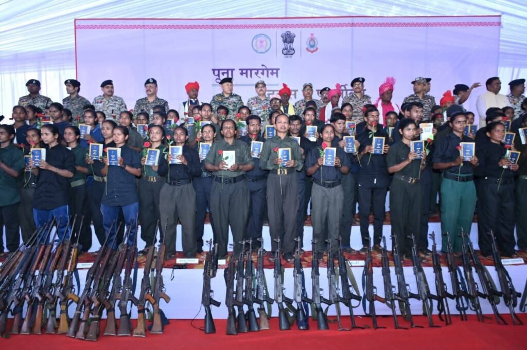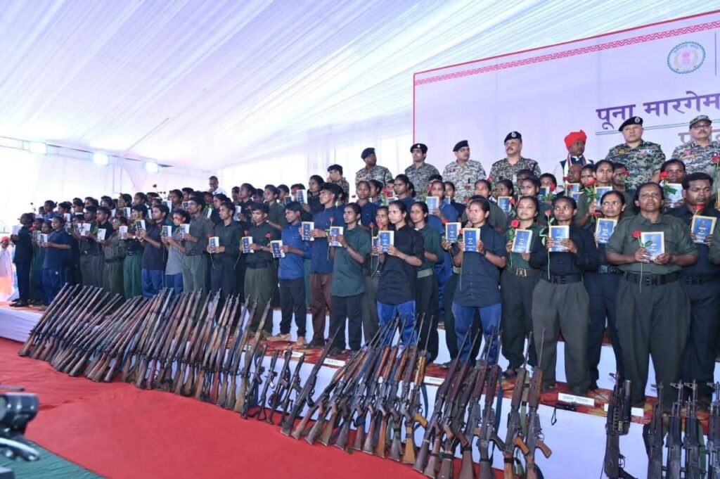 CG MEDIA TV:पुनर्वास से पुनर्जीवन की भावना के साथ कुल 210 नक्सलियों ने हथियार छोड़कर पुनर्वास का रास्ता अपनाया। इनके साथ कुल 153 खतरनाक हथियार/उपकरण भी जप्त किए गए जिनमें प्रमुख हैं: 19 AK-47 राइफल, 17 SLR, 23 INSAS, 36.303, 41 12-बोर/सिंगल-शॉट, 11 BGL लांचर, 4 कार्बाइन और 1 INSAS LMG। साथ ही पुनर्वास करने वालों में संगठनात्मक पदों पर रहे कई सदस्य भी शामिल हैं।