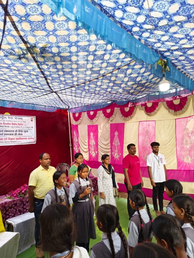 सामाचार प्रभारी दमलेश्वरी चंद्रा, हसमुख जोलहे द्वारा..आज सी.पी.एम. कल एवं विज्ञान महाविद्यालय के रा.से.यो. इकाई के विशेष शिविर का दूसरा दिवस जिसमें सुबह प्रभात फेरी के बाद विद्यालय परिसर की पूर्ण सफाई परियोजना कार्यक्रम के तहत रा.से.यो. के स्वयं सेवक छात्र-छात्राओं के द्वारा की गई तत्पश्चात् मुख्य अतिथि के रूप में ग्राम ( घोटला छोटे) शासकीय विद्यालय के प्रचार्य जगराम लक्ष्मेय सर जी, सिदार सर जी, अनिता मैम जी महंत सर जी उपस्थित रहीं। बौद्धिक परिचर्चा का विषय “डिजिटल साक्षरता के लिए युवा एवं स्वच्छता ही सेवा” था l फ़िर हमारे संध्या फेरी के साथ गांव में भ्रमण किये l महाविद्यालयों से आये हुए शिक्षकों के साथ समीक्षा बैठक समाप्त हो गई l जिस पर स्वयं सेवक छात्र-छात्राओं द्वारा तथा अतिथियों के द्वारा अपना विचार व्यक्त किया गया। संध्या में स्वयं सेवकों द्वारा सांस्कृतिक कार्यक्रम किए गए जिसमें ग्रामीण गणमान्य नागरिकों द्वारा कार्यक्रम का आनंद लिया गया तथा समाज को स्वस्थ बनाने हेतु स्वयं सेवकों ने संदेश दिये।
